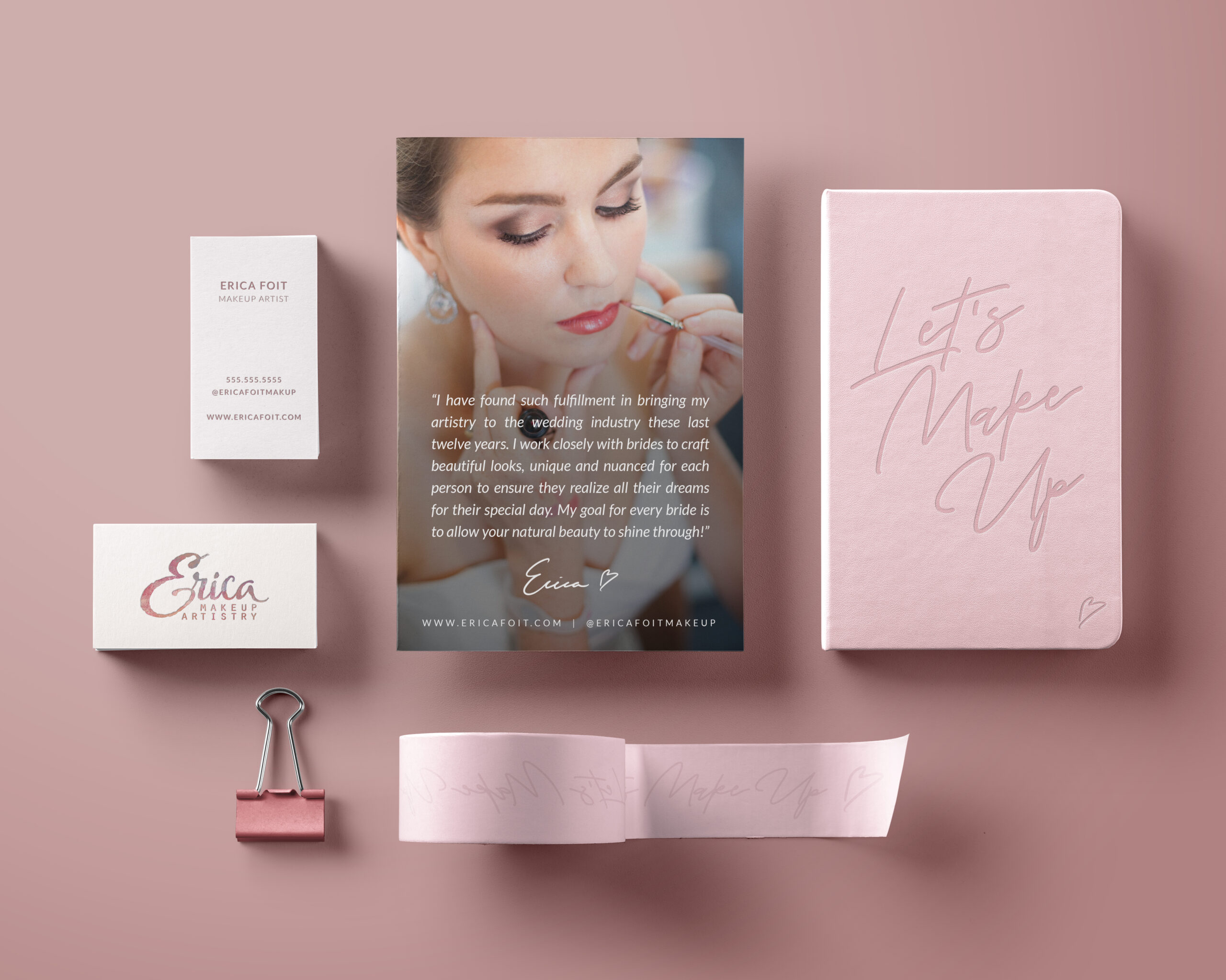 Here are some design concepts I’d like to incorporate into a refresh of Erica’s brand including some bridal show booth signage and swag.