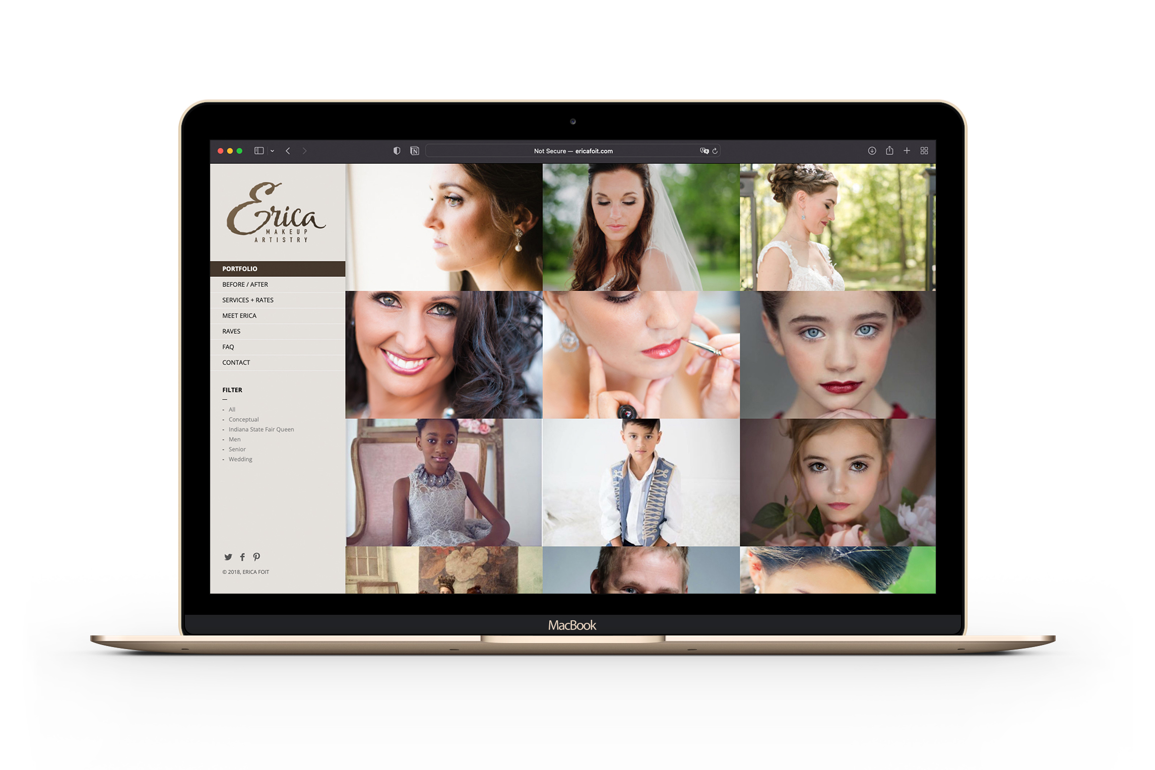 In addition to the many photography projects Erica and I have worked on over the years, I also helped put together a branding package for her; including a logo, business cards and a website. While we wanted something elegant and representative of the beautiful makeup artistry that Erica provides, we also wanted to bring a bit of her personality into the mix. Erica’s husband Michael is a talented artist, so he created some of the early logo concepts that incorporated her love of fairies, with an old-world feel. I took those concepts and refined them (also adding a slightly modern twist) and we ended up with this logo. It works great, has held up over the years, and also allows Erica to stand out in a sea of competition within the industry.