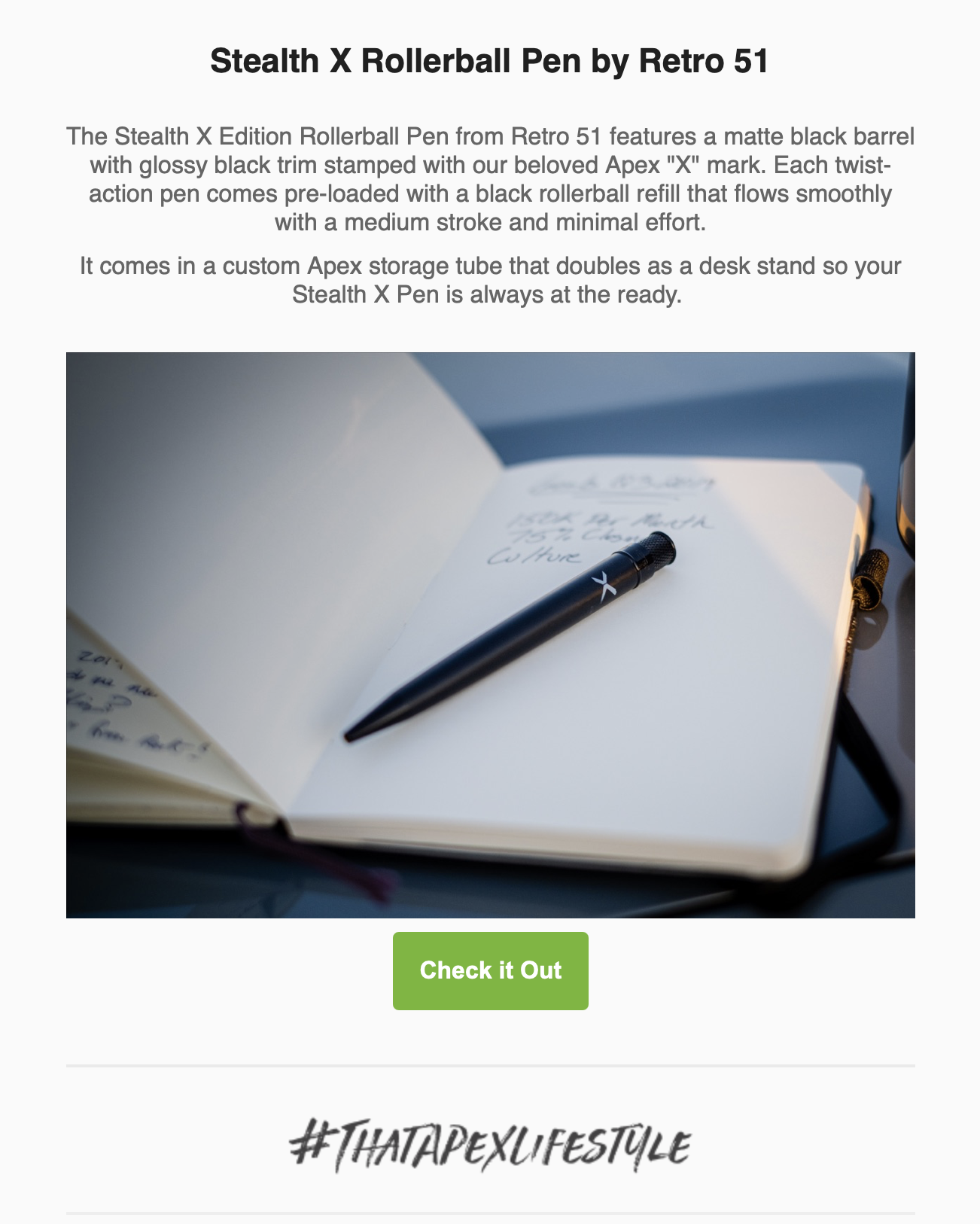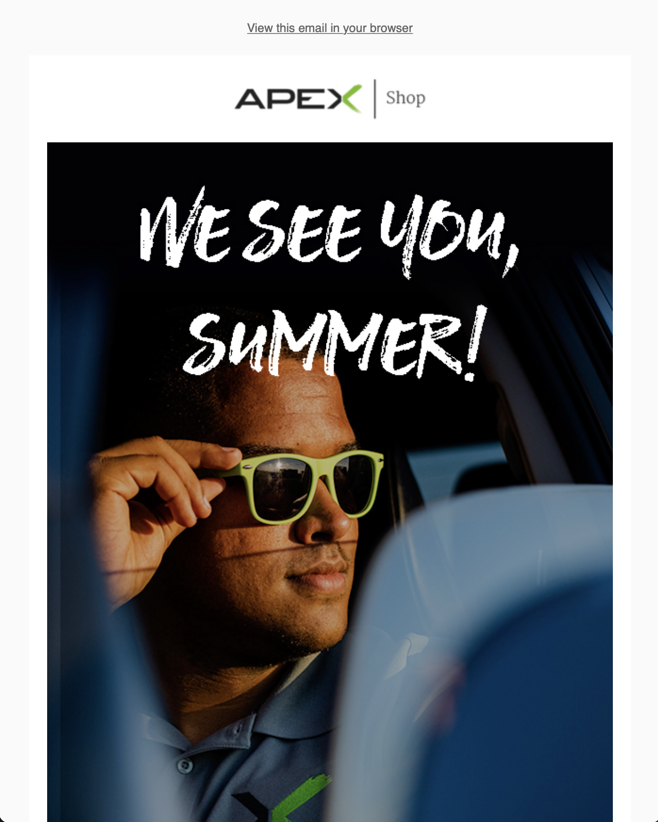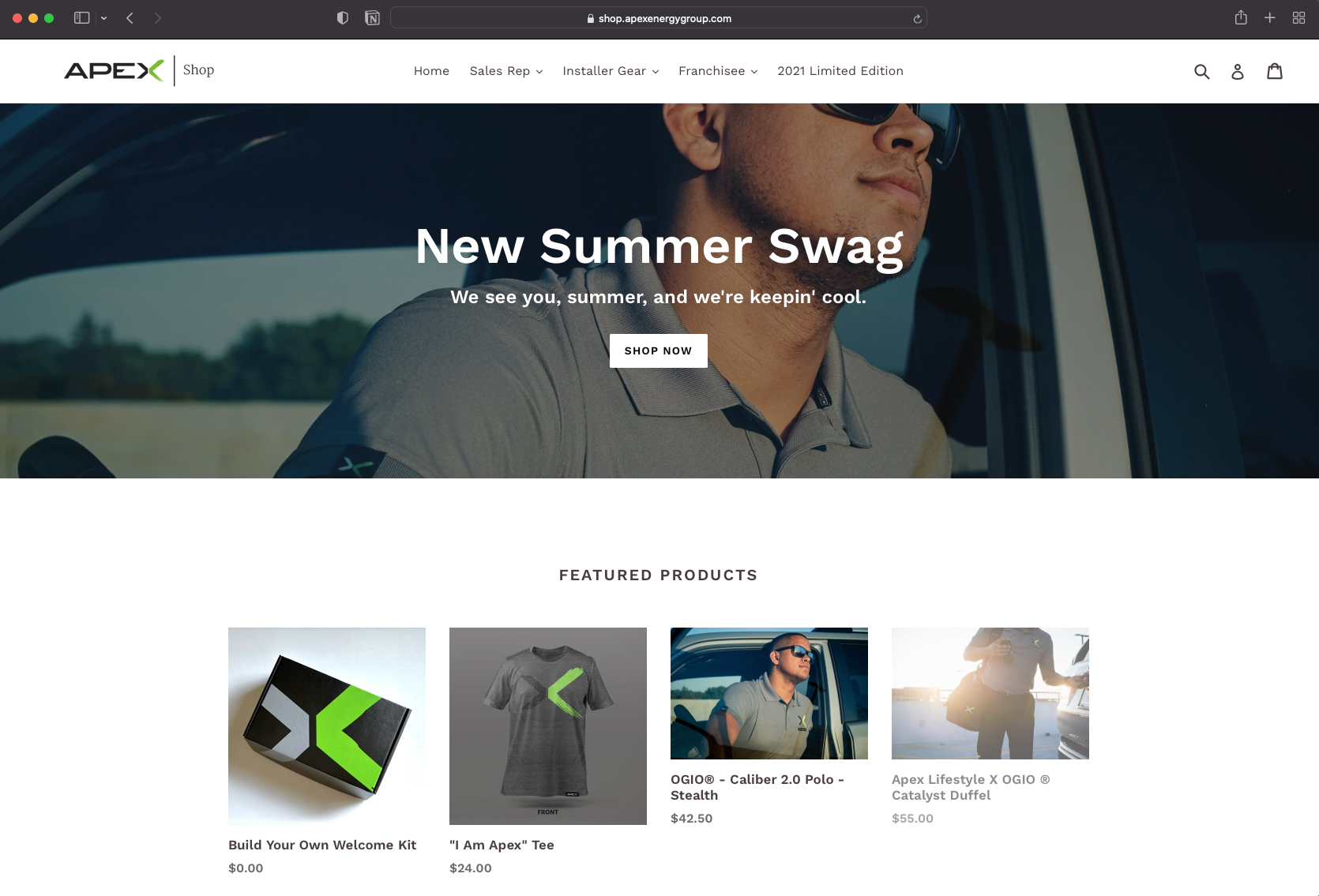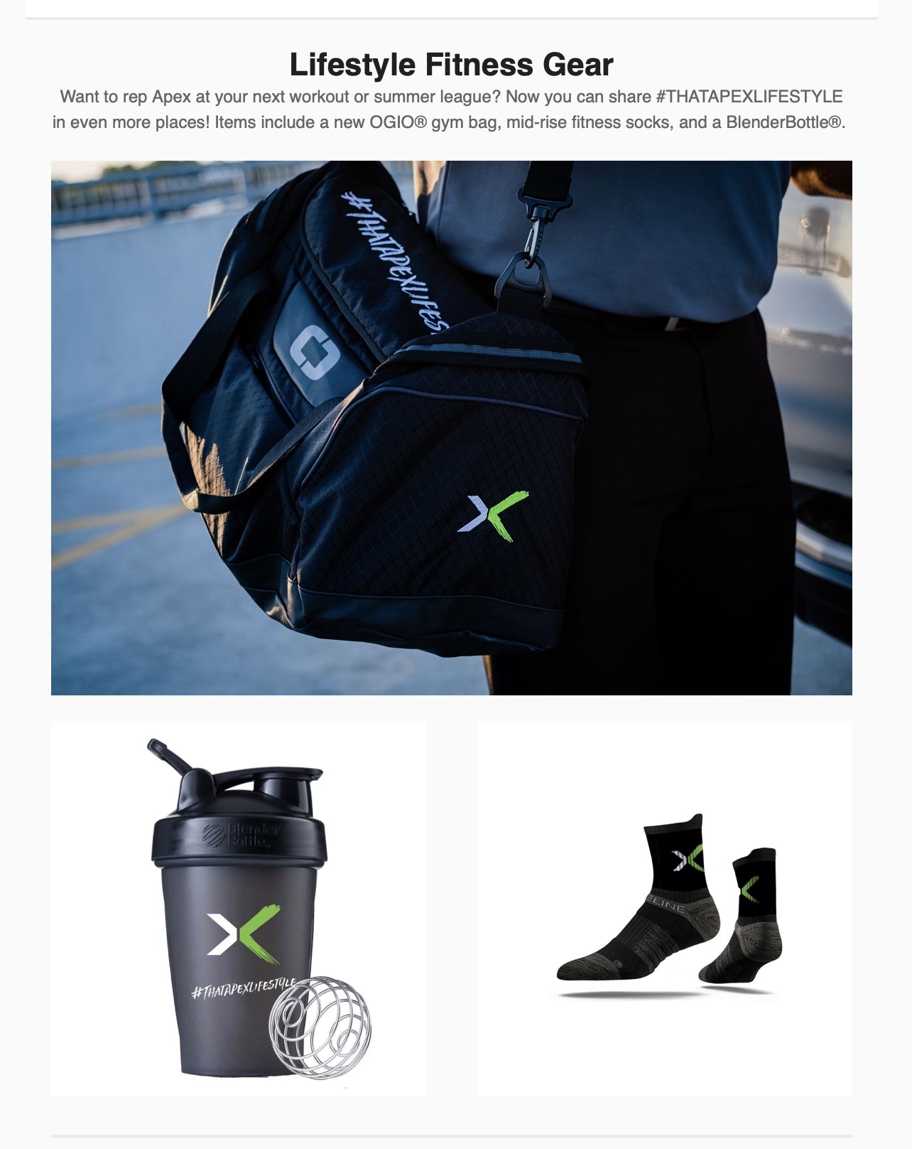 Here you can see how I leveraged the photography to showcase the new apparel and swag items on the Apex Shop as well as an email campaign we used to let reps across the country know about the launch of these new products.