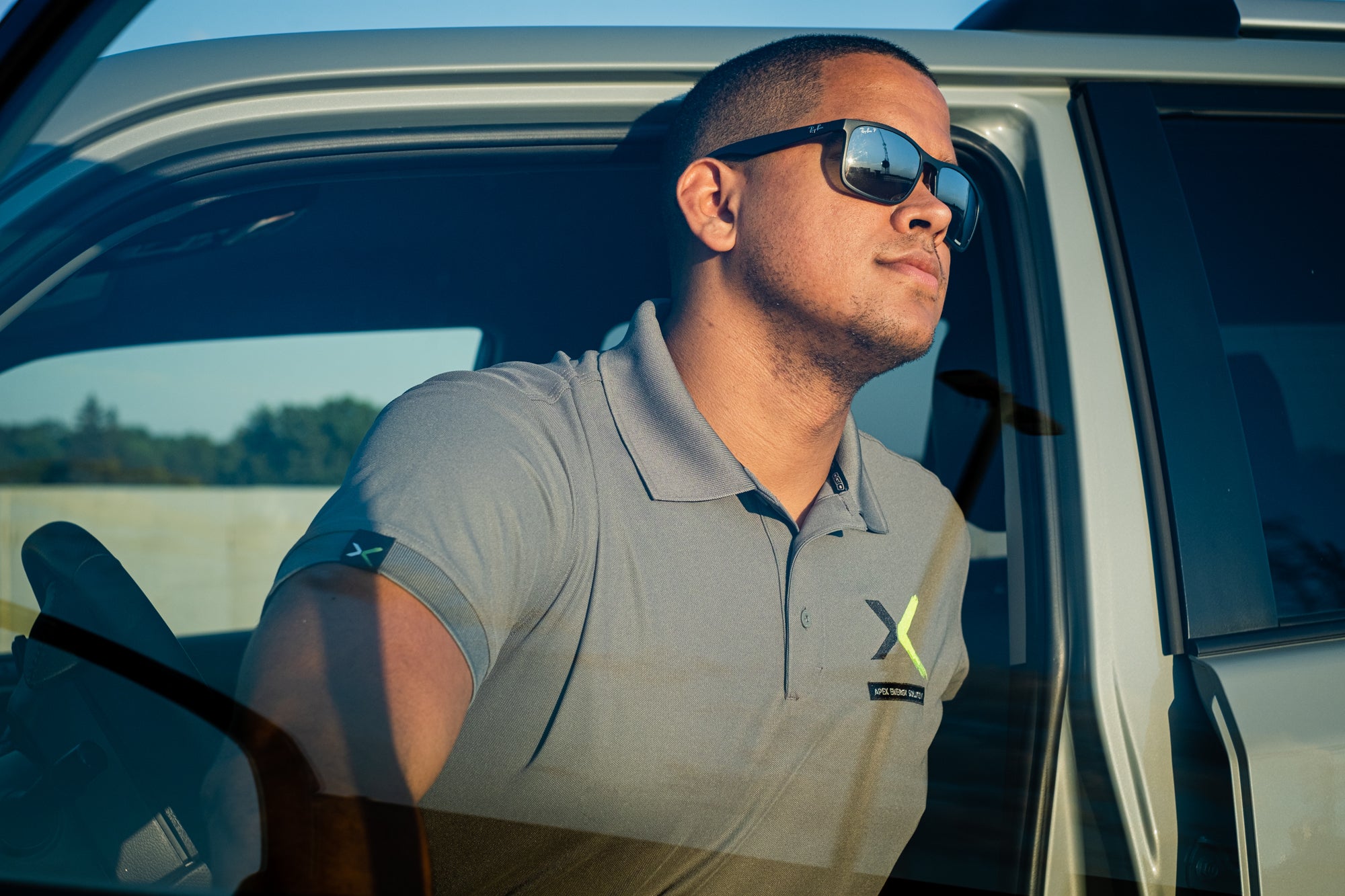 I loved designing and rolling out new apparel and swag items for the Apex team. I worked hard to bring quality items to their reps that aligned with Apex’s mission and culture and were meaningfully embellished with various Apex marks. We put together a nice drop in 2019, so I decided to shoot some lifestyle photos with them before we launched to the team. I convinced one of the best looking guys at Apex to model for me and we headed to a parking garage in Carmel for some golden-hour lighting. These images got a lot of use in promoting the products internally to the team.
